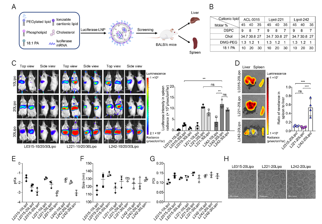 Figure 2. 脾臟靶向脂質(zhì)納米顆粒的篩選
