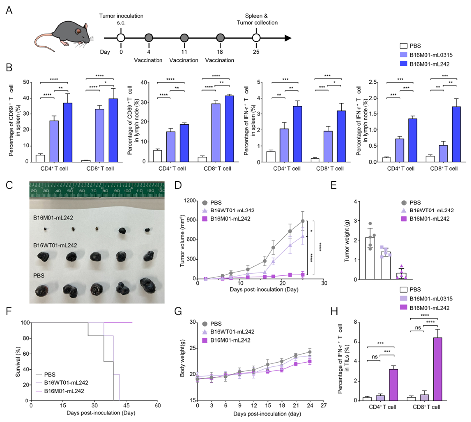 Figure 4. T細(xì)胞反應(yīng)和B16M01-mL242的抗腫瘤療效