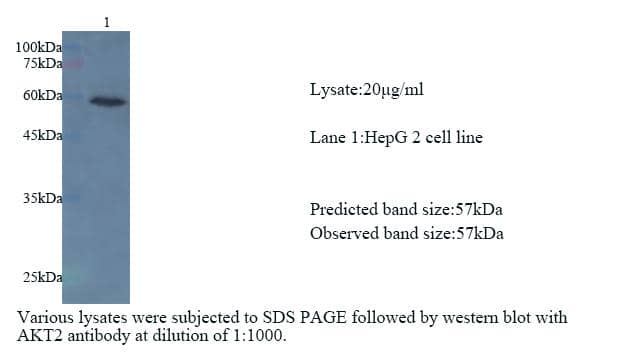兔抗人AKT2多抗內(nèi)源樣本W(wǎng)B驗證結(jié)果(HepG 2細胞)