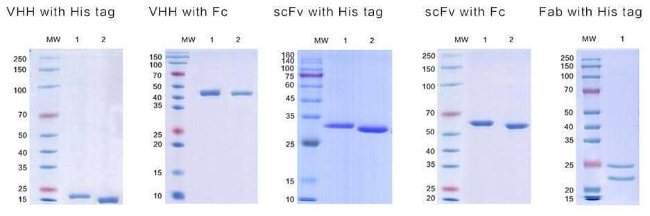 普健生物提供種類齊全的個性化抗體片段表達服務,包括Fab、ScFv、VHH、tandem-scfv等。可根據客戶提供的抗體信息表達抗體片段。普健生物自有的哺乳表達系統高產量pATX系列載體及馴化293系列和CHO系列細胞,能實現多種形式的重組抗體片段的高效分泌表達。